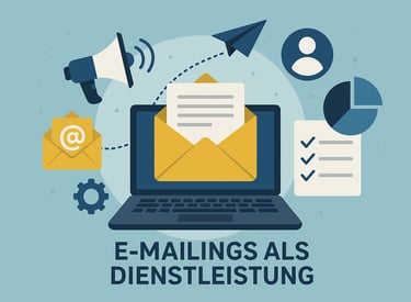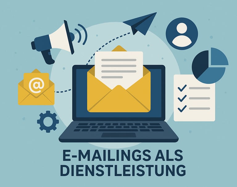E-Mailings als Dienstleistung umfasst die professionelle Planung, Gestaltung, Durchführung und Analyse von E-Mail-Kampagnen. Ziel ist es, Unternehmen bei der gezielten Kundenansprache, Lead-Generierung und Bindung zu unterstützen – rechtssicher, effizient und messbar.